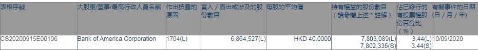 智通财经APP获悉,香港联交所最新资料显示,9月10日,美国银行减持美兰空港(00357)约686.45万股,每股作价40港元,总金额约为2.75亿港元。减持后最新持股数目约为780.3万股,最新持股比例为3.44%。