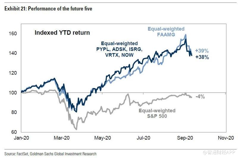 尽管如此,高盛分析师David Kostin指出,由于对FAAMG持续增长动能的怀疑、对估值的担忧,到纯粹的结构性因素,越来越多的投资者开始寻找当前五家之外的快速增长公司。