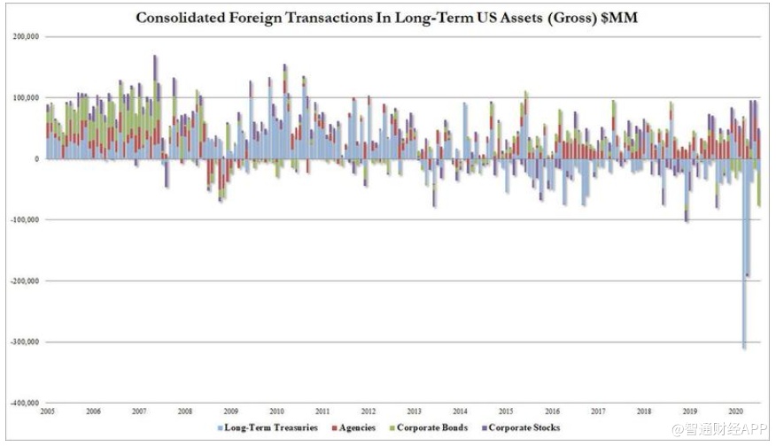 但无论如何,分析师表示,除了3月和4月创纪录的抛售以及7月公司债的抛售外,外国投资者交易的美国长期资产总量相对稳定。