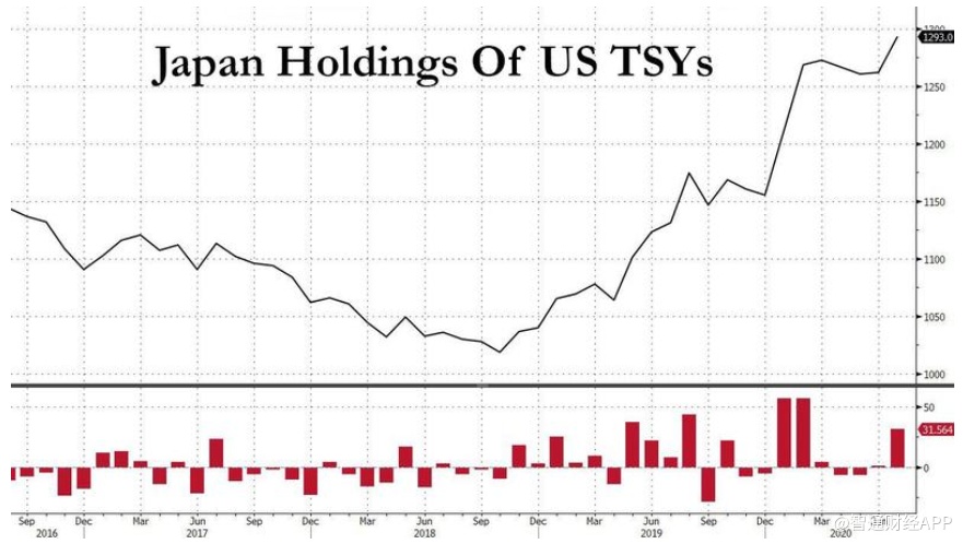 另一方面,去年超过中国成为美国最大债权国的日本继续购买美国国债,7月份增加了316亿美元,为2月份以来的最高水平,使美债持仓规模达到创纪录的1.293万亿美元。