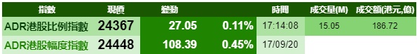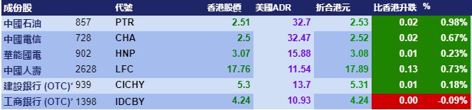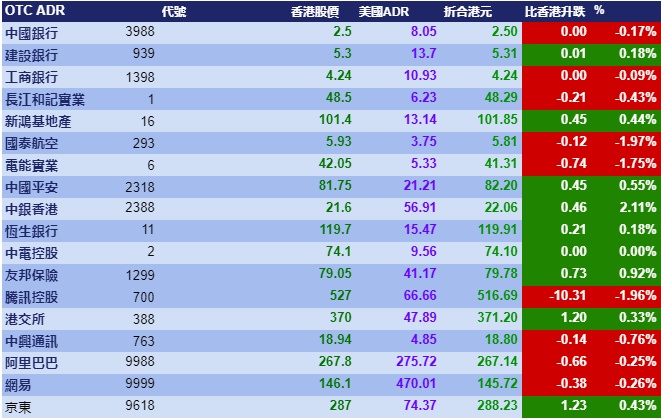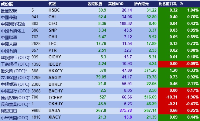 智通财经APP获悉,周四美股三大指数下跌,但港股ADR指数全日走好,按比例计算,收报24367点,升27.05点或0.11%。