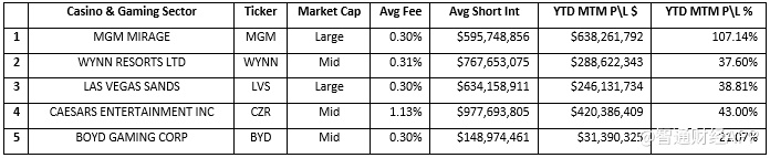 今年以来,美高梅、永利度假村、金沙集团和凯撒娱乐的空头获得了不错的盈利。