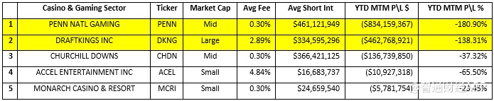 但佩恩国民博彩、DraftKings和Churchill Downs(CHDN.US)的空头则成为今年的大输家。