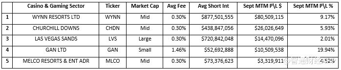 9月份,博彩空头开始亏损,在仅半个月的时间里,扣除融资成本后按市值计价的净亏损就达到7.02亿美元。如果这一趋势持续下去,到本月底,空头就会出现全年亏损。但永利度假村、Churchill Downs和金沙集团的空头却非常幸运,他们在9月获得了不错的回报。