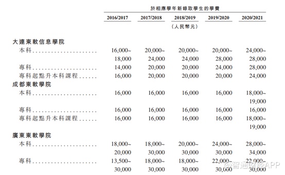 一般来讲,收费水平和学生人数是驱动教育行业业绩增长的主要核心因素。招股书显示,除了成都学院近年来的收费水平未发生变化之外,东软教育旗下的大连学院、广东学院的新生学费涨幅均不低。