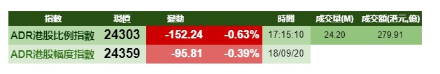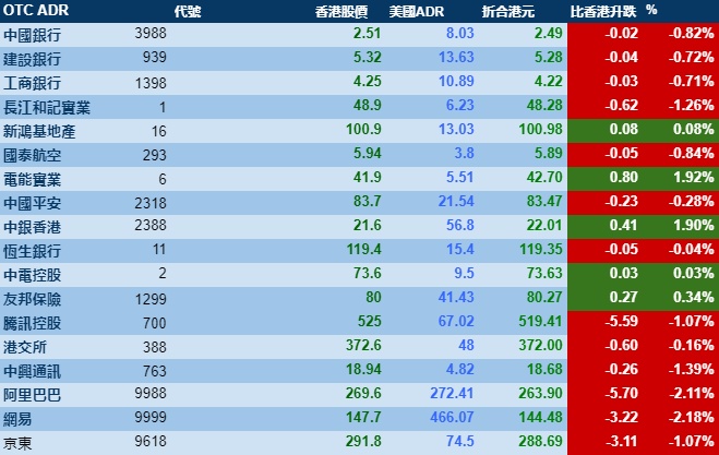 智通财经APP获悉,美股周五下跌,科技股走低。港股ADR指数亦走低,按比例计算,收报24303点,跌152.24点或0.63%。