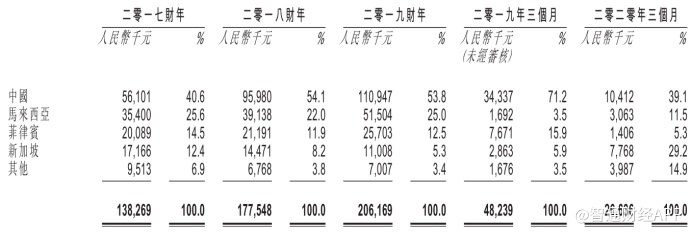 其中,中国和马来西亚市场为公司最主要的两个市场。2019年度,公司来自这两个市场的收入占比分别达到53.8%、25%,共占据了公司近80%的收入来源。