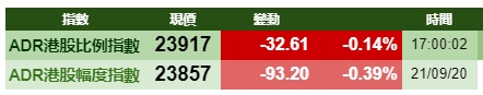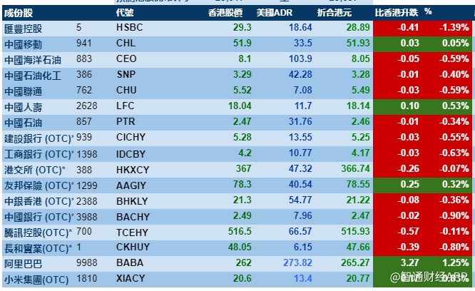 智通财经APP获悉,美股周一下跌,道琼斯指数收跌1.84%。港股ADR指数亦走低,按比例计算,收报23917点,跌32.61点或0.14%。