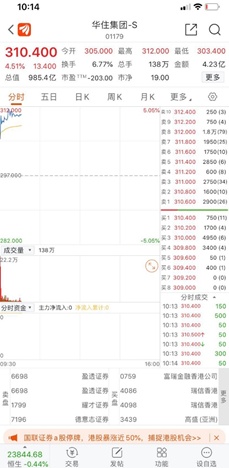 智通财经APP获悉,9月22日,华住集团(HTHT.US)在香港成功上市,股票代码为01179.HK。华住集团-S首日挂牌,截至10时14分,首日开涨超4.5%,股价超310港元,成交额4.23亿元,市值逼近千亿港元。
