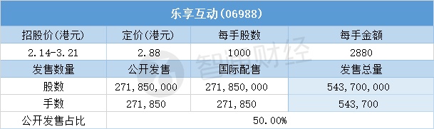 智通财经APP获悉,9月22日,乐享互动(06988)配售结束。配售招股价2.14-3.21港元,最终定价2.88港元,每手2880港元。