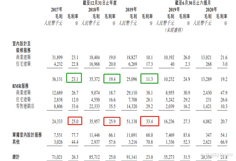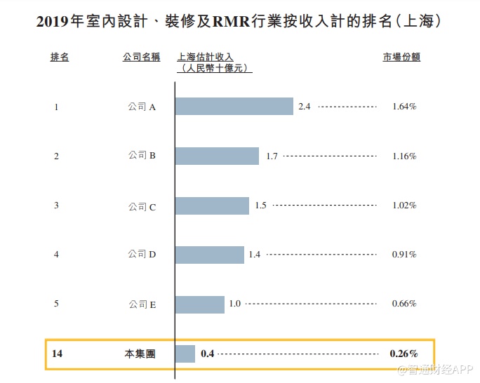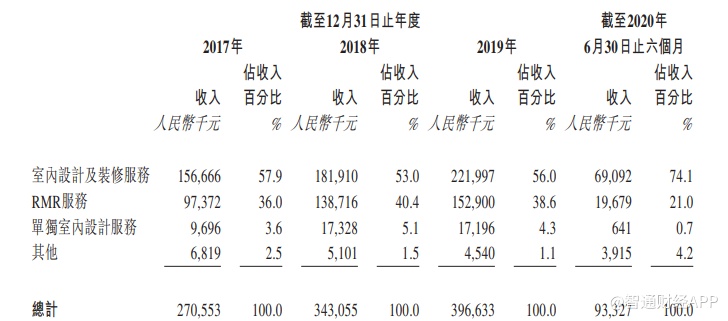 而据弗若斯特沙利文显示,该行业增速将进一步放缓。数据显示,从2015至2019年,室内设计及装修行业的年复合增速为7.1%,而2020年至2024年该增速将放缓至4.8%。与此同时,RMR服务行业的增速也将从2015至2019年的7.9%下降到2020至2024年的5.6%。