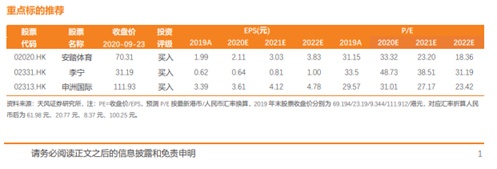 关注运动行业优质标的:安踏体育(02020)、李宁(02331)、申洲国际(02313)。