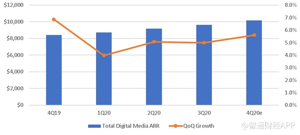 智通财经APP观察到,Adobe(ADBE.US)最近一季的表现并不令人意外——数字媒体业务(Digital Media)又一次实现了强劲增长,这抵消了数字体验业务(Digital Experience segment)的疲软。总的来说,数字媒体仍然是Adobe增长故事的关键。作为同类软件资产中最好的,能够实现可持续的两位数的经常性收入增长,同时还能受益于营业利润率的扩大,这部分业务是Adobe的皇冠上的宝石。