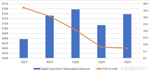 总体而言,第三季度数字体验订阅收入同比增长放缓至7%,但目前的该公司预计第四季度同比增长将进一步放缓至1%左右。尽管如此,Adobe体验平台和AEM云服务在现有和新客户中的使用率不断上升,以及商务产品的环比大幅增长,这些有前景的领先指标都表明,该企业在竞争中处于有利地位,有望抓住客户在复苏期间的潜在支出。