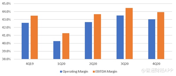 令人有些意外的是,管理层预测第四季度净新增经常性收入为5.4亿美元,这意味着今年的ARR达102亿美元,表明短期内将继续保持同比强劲。然而,相对于历史上第三季度/第四季度的季节性变化,此次ARR指引指向了一些增速放缓。ARR通常以6-7%的季度速度增长(而下一季度隐含的增长率为5-6%)。这突出了Adobe作为在家工作受益者的地位。尽管如此,ARR仍在以健康的步伐前进,这是积极的现象。