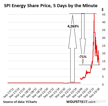交易是如此疯狂,阳光动力盘中股价从13.41美元涨到46.67美元只用了38分钟。但Wolf Richter怀疑很多人能否在40美元以上的水平解套,因为股价在40美元以上的交易时间只有7分钟。美东时间9月23日14:06,该股股价在45.39美元左右交易,一分钟后跌至33.53美元。