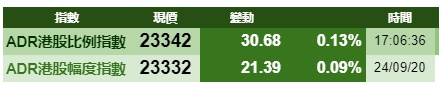 智通财经APP获悉,周四美股小幅上涨,港股ADR指数跟随微涨,按比例计算,收报23342点,涨30.68点或0.13%。