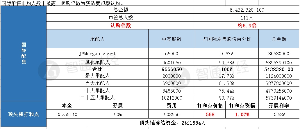国际配售申购人数未披露,认购倍数约6.9倍。