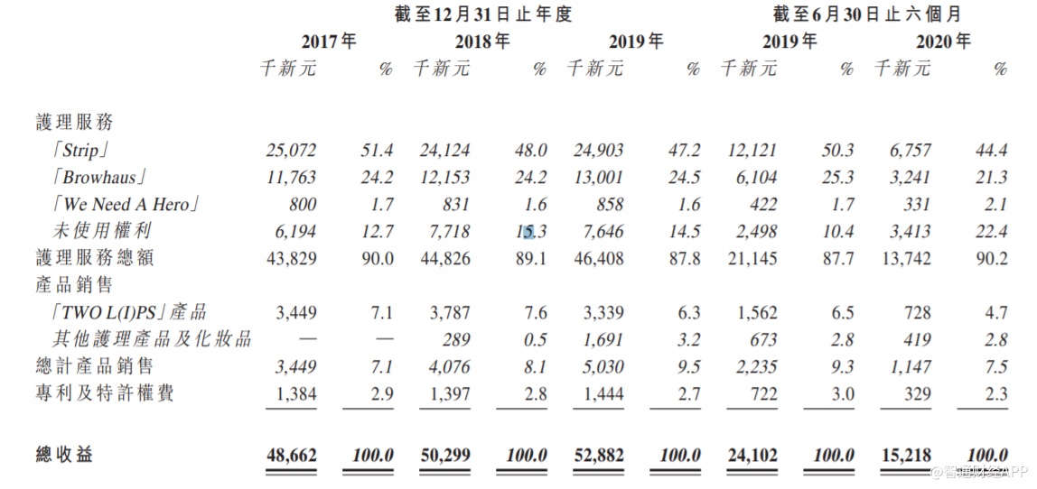 公司总部位于新加坡,自2002年至今,已从一家小型本地门店发展成为一家国际公认的美容专家。公司分别以“Strip”、“TWO L(I)PS”、“Browhaus”及“We Need A Hero”品牌在私密护理、面部塑形及男士美容方面提供服务及配套护理与美容产品。其中,“Strip”及“Browhaus”于2019年在新加坡私密护理及面部塑形行业名列榜首,在各自市场分别约占14.9%及12%的市场份额。