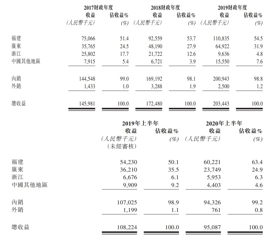 据悉,该公司主要向福建、广东及浙江的客户出售产品。与此同时,德运也向包括香港等中国其他地区出售产品,以及与其他国家从事国际贸易,包括泰国、越南、巴西、柬埔寨及拉脱维亚。