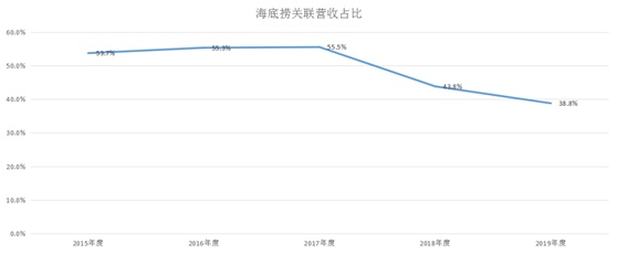 得益于自热方便食品的成功,从2017年开始,由海底捞所贡献的营收比例开始逐渐降低,到2019年,这一比例已经下降至38.8%。