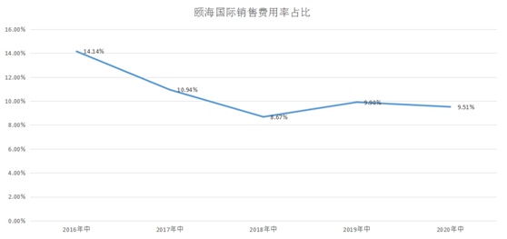 从数据来看,颐海国际近几年的销售费用,呈现逐年下降趋势。2020上半年,该项支出在总营收中的占比仅为9.51%。这在调味品行业内,是低于中位数的水平。