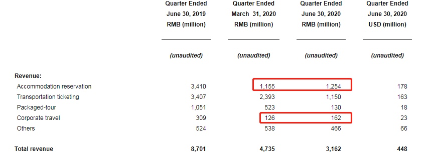 据财报显示,得益于国内市场经营环境的改善,携程二季度内住宿预定、商旅管理两大业务实现了不同程度的复苏。其中,住宿预定收入为12.54亿元,环比增长8.57%;商旅管理收入为1.62亿元,环比增长29%。