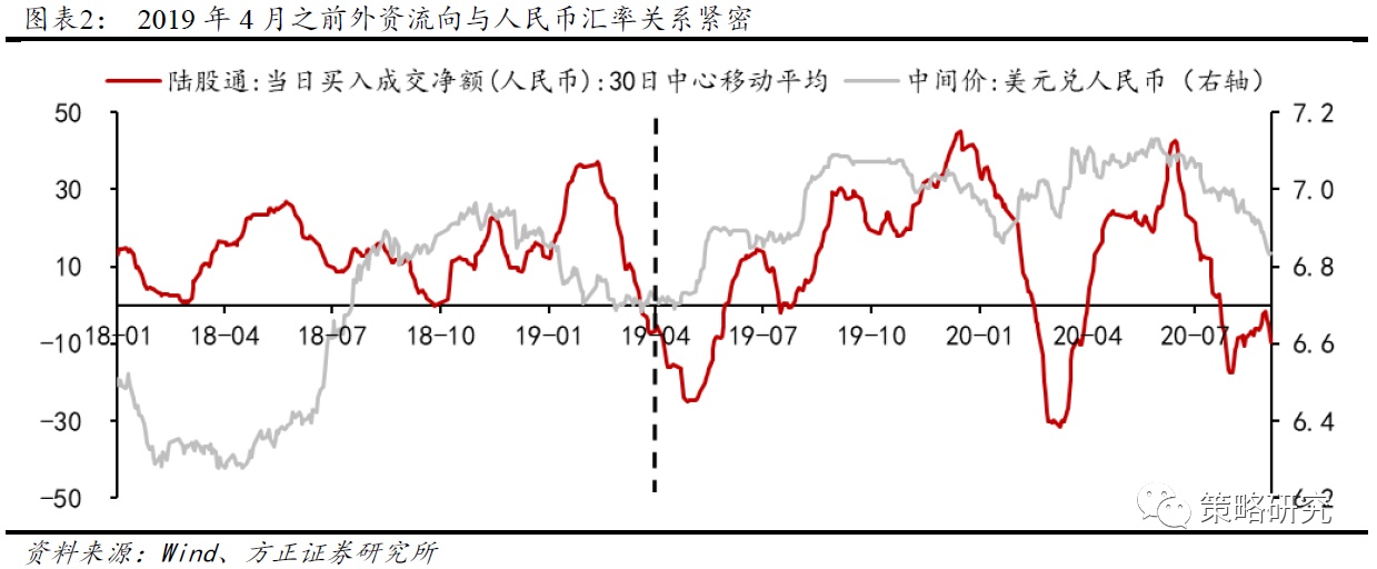 自2018年中美贸易形势变化开始至2019年4月期间,外资流向同人民币汇率密切相关。具体来看,2018年3月中美贸易摩擦初现端倪,6月15日500亿美元互征关税后人民币贬值加速,外资边际上开始流出,这一趋势一直持续到2018年10月底,11月美元兑人民币汇率筑顶之后人民币开始升值,外资边际上开始重新流入。直至2019年3月,人民币升值趋势结束,外资重新开始边际流出。总体而言,在2018年中美贸易摩擦爆发之后,外资的流向同人民币汇率呈现高度的相关性,人民币贬值趋势下外资大概率边际流出,升值趋势下大概率边际流入,背后最重要的原因是贸易摩擦的走向决定了人民币汇率,进而影响人民币资产的预期收益和外资的行为。