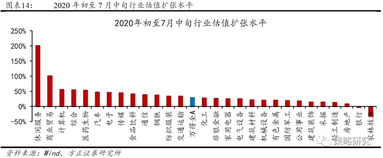 3、以7月中旬为分水岭,外资今年以来的配置思路发生了明显的转变,减配高估值、与流动性扩张密切相关以及卫生事件受益的行业,增配低估值、与经济复苏预期相关的行业。