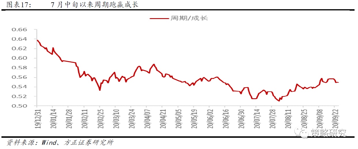 4、维持牛市第三阶段调整期的判断,配置上逢低布局低估值顺周期相关的领域。当前市场的核心因素在于经济复苏的力度,需要观察全球卫生事件的演绎,是否有可能中断经济复苏的节奏,有利因素在于卫生事件死亡率在降低,国内防控措施依然较强等。从国内经济的情况来看,生产端依然有韧性,需求端环比仍在改善,复苏的趋势较为明确。对于流动性而言,二阶拐点出现之后,进入不松不紧的格局,但全市场估值扩张的过程均进入阶段性暂停期。风险偏好仍会受中美关系的影响,美国大选进入冲刺期,10月需关注三场总统辩论的进展,此外,10月惊变有可能涉及到国际关系,地缘政治的风险犹存。市场大跌的风险也有限,10月底将召开五中全会,国内政策依然积极有为。综合来看,市场仍将处于调整期,静待良机,等待风险因素缓释出清,配置上逢低布局低估值顺周期的相关行业,如可选消费中的汽车、家电,强周期的化工、有色,地产后周期相关的建材,人民币升值相关的航空、造纸等细分领域。