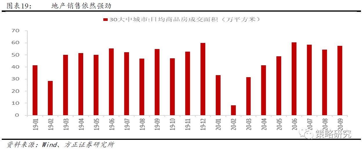 9月经济延续恢复态势,预计三季度经济增速可以回到5%以上的判断不变。考虑到海外卫生事件二次爆发的预期冲击,经济修复预期可能受阻,需要密切关注国内秋冬卫生事件是否出现反复。最新公布的8月份规模以上工业企业利润同比增长19.1%,增速比7月份回落0.5个百分点,但仍连续四个月保持正增长,修复斜率略微放缓。从9月的高频数据来看,近一周浙电发电耗煤量环比走弱,同比增速回落至-1.6%。其他生产指标中,全国高炉开工率69.89%、焦化厂焦炉生产率86.86%均相比上一周小幅走弱,生产端整体有小幅回落。需求端来看,30大中城市商品房成交面积同比回落至,土地成交持续下行,100大中城市成交土地规划建筑面积同比增速为-68.3%。汽车销量同比增速小幅回落,乘用车零售同比回落至16%。全国餐饮账单恢复度进入9月以来持续下行,目前仅为年初的94%。需求端修复斜率也有放缓态势。从外贸领先指标出口集装箱价格指数来看,相比上周其仍处于大幅抬升的过程,表明出口景气度依然较高。总体而言,9月经济恢复势头依然较好,斜率略小于8月,三季度经济增速有望回升至5%以上。考虑到海外卫生事件二次爆发的预期冲击,经济修复预期可能受阻,需要密切关注国内秋冬卫生事件是否出现反复。
