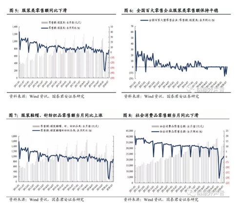 品牌零售端20年8月同比上涨:2020年8月,服装鞋帽针纺织品类零售额同比上涨4.2% 环比增速提升6.7pct。
