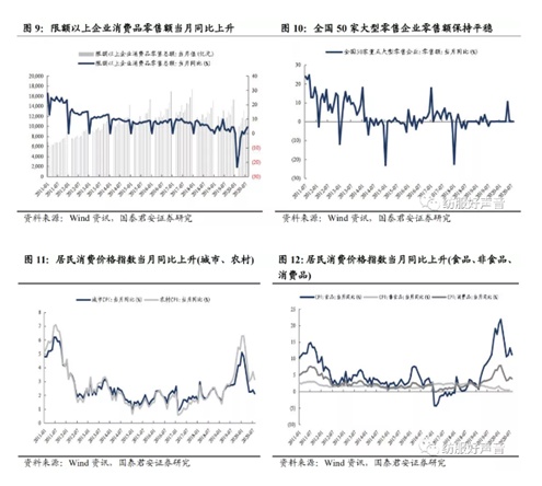 社会零售端20年8月同比下滑:2020年8月,我国社会消费品零售总额同比上涨0.5%,增速环比上升1.6pct;限额以上企业消费品零售总额同比上升4.4%,增速环比上升2.2pct。
