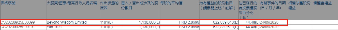智通财经APP获悉,香港联交所最新资料显示,9月24日,Beyond Wisdom Limited增持景瑞控股(01862)113万股,每股作价2.0696港元,总金额约为233.86万港元。增持后最新持股数目约为6.23亿股,最新持股比例为44.48%。