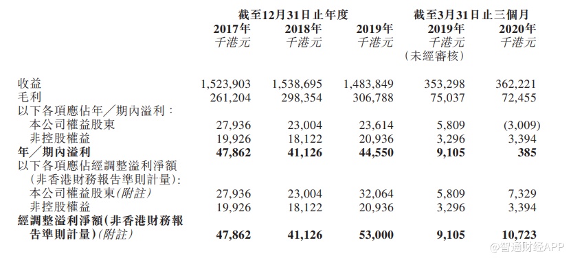 截止至2019年和2020年3月31日,该公司收入分别为3.53亿和3.62亿港元。期内净利润为911万和38.5万港元。