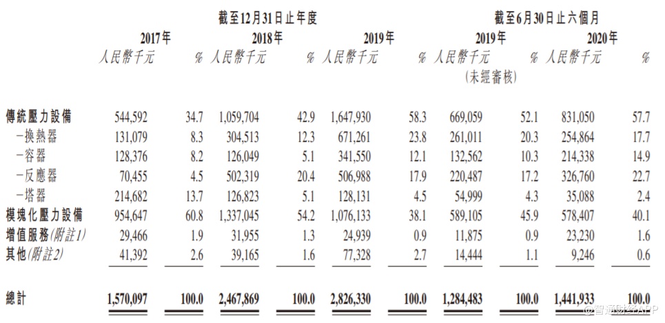 招股书披露,截至2020年6月30日,公司的未完成合约总值约为32.248亿元,包括传统压力设备、模块化压力设备及压力设备相关增值服务的相关 合约分别约21.795亿元、10.09亿元及3600万元。截至今年9月21日,公司订立了153份新合约,合约总值约为7.51亿元。
