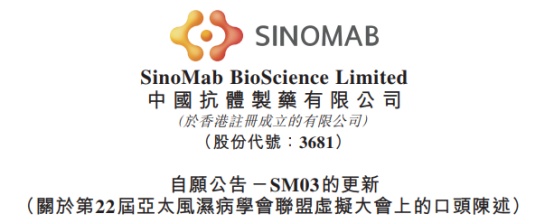 此前,公司向APLAR递交的报告摘要题为“抗人CD22单克隆抗体SM03治疗中国类风湿关节炎患者的抗药抗体反应”。此次陈述为SM03研究及开发的一部分,将主要介绍SM03治疗类风湿关节炎的临床研究。今次亦是继6月8日在2020年欧洲风湿病学大会上公司作出首次国际口头陈述后,有关治疗类风湿关节炎SM03临床研究报告摘要的第二次国际口头陈述,其学术意义重大。