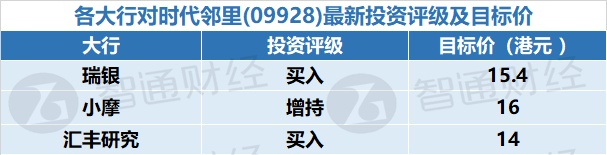三、各大行对时代邻里(09928)最新投资评级以及目标价