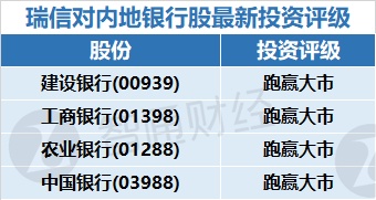 一、瑞银对内地银行股最新投资评级