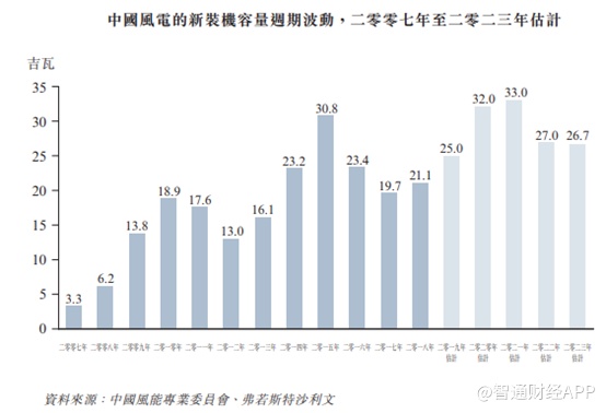 具体到风力发电行业,2014年至2018年,国内风力发电量从159.8太瓦时增至366太瓦时,年复合增长23%,远远超过总发电的增长速度。不过,由于风力发电的技术和市场限制,其受到政策面的影响十分明显,呈现明显的周期性。