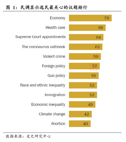经济议题上共和党大幅领先民主党。公共卫生事件前美国经济的繁荣将成为特朗普鼓吹的重点,而拜登增税则是特朗普攻击的靶点。