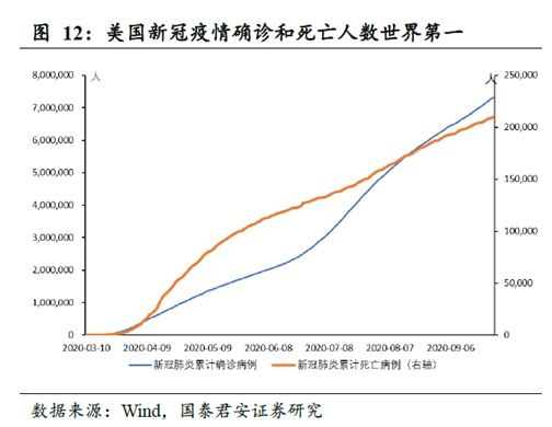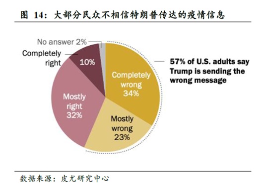 在卫生事件方面,民主党保持着对共和党的大幅领先,成为拜登攻击特朗普最有利的靶点。根据皮尤研究中心民调数据(图8),拜登在卫生事件议题上领先了特朗普12%,随着后续可能出现的卫生事件反复以及有次带来的经济停滞也将成为选民关注的核心,拜登将在该议题上竭力攻击特朗普应对卫生事件不力,并指责特朗普把抗疫不力的责任甩锅给中国。
