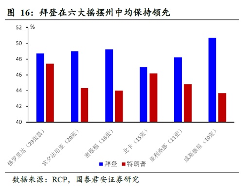 3.目前全国综合民调和摇摆州民调中拜登均保持领先