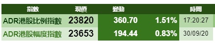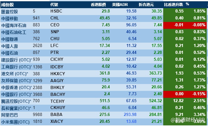 智通财经APP获悉,周三美股三大指数上涨,港股ADR指数跟随上涨,按比例计算,收报23820点,涨360.7点或1.51%。