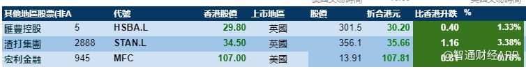 大型蓝筹普涨,汇丰控股收报30.35港元,较港收市涨1.85%;腾讯控股收报524.32港元,较港收市涨2.51%。
