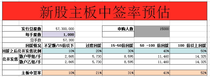 目前这票回拨15倍以下,大概率是一手中签率10%;