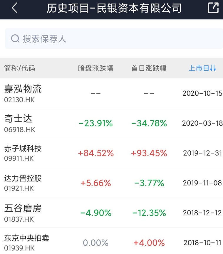 民银资本资本有限公司保荐的业绩一般般,就赤子城。