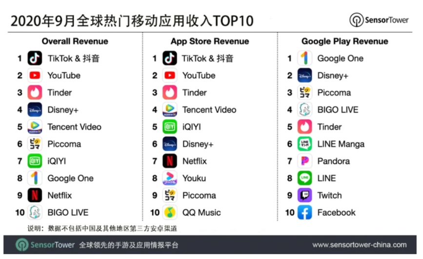 智通财经APP获悉,10月7日,Sensor Tower发布9月全球热门移动应用收入Top10榜单。