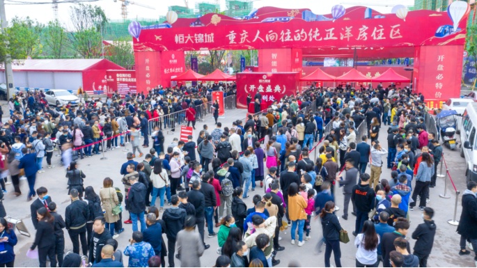 10月8日,恒大在哈尔滨、重庆、贵州、青岛、珠海、佛山、包头等城市,压轴推出九大新盘,并延续“开盘必特价”的营销策略。在各楼盘开盘现场,万人排队抢房的盛况再次上演。即便是哈尔滨的“龙江恒大世纪梦幻城”特意将开盘现场设在当地最大的会展中心,依然人头攒动、座无虚席,迎来了5万多客户疯抢,或有望成为黄金周甚至今年的全国销冠。
