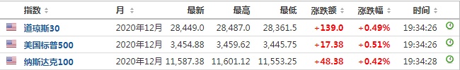 科技股方面,苹果(AAPL.US)盘前涨0.02%,Facebook(FB.US)盘前涨0.22%,亚马逊(AMZN.US)盘前涨0.29%,微软(MSFT.US)盘前涨0.28%。
